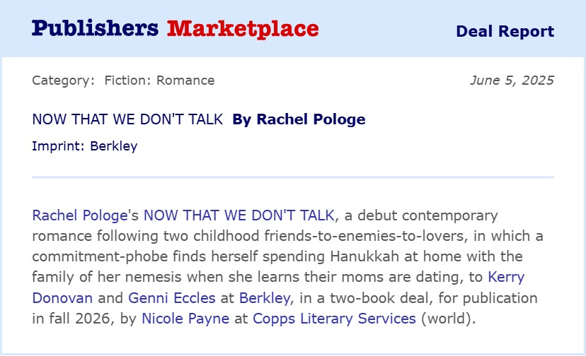 My debut novel, NOW THAT WE DON’T TALK, is coming your way in Fall 2026 from Berkley! Every syllable of that is a dream come true, and I can’t wait to share more with you when I can.